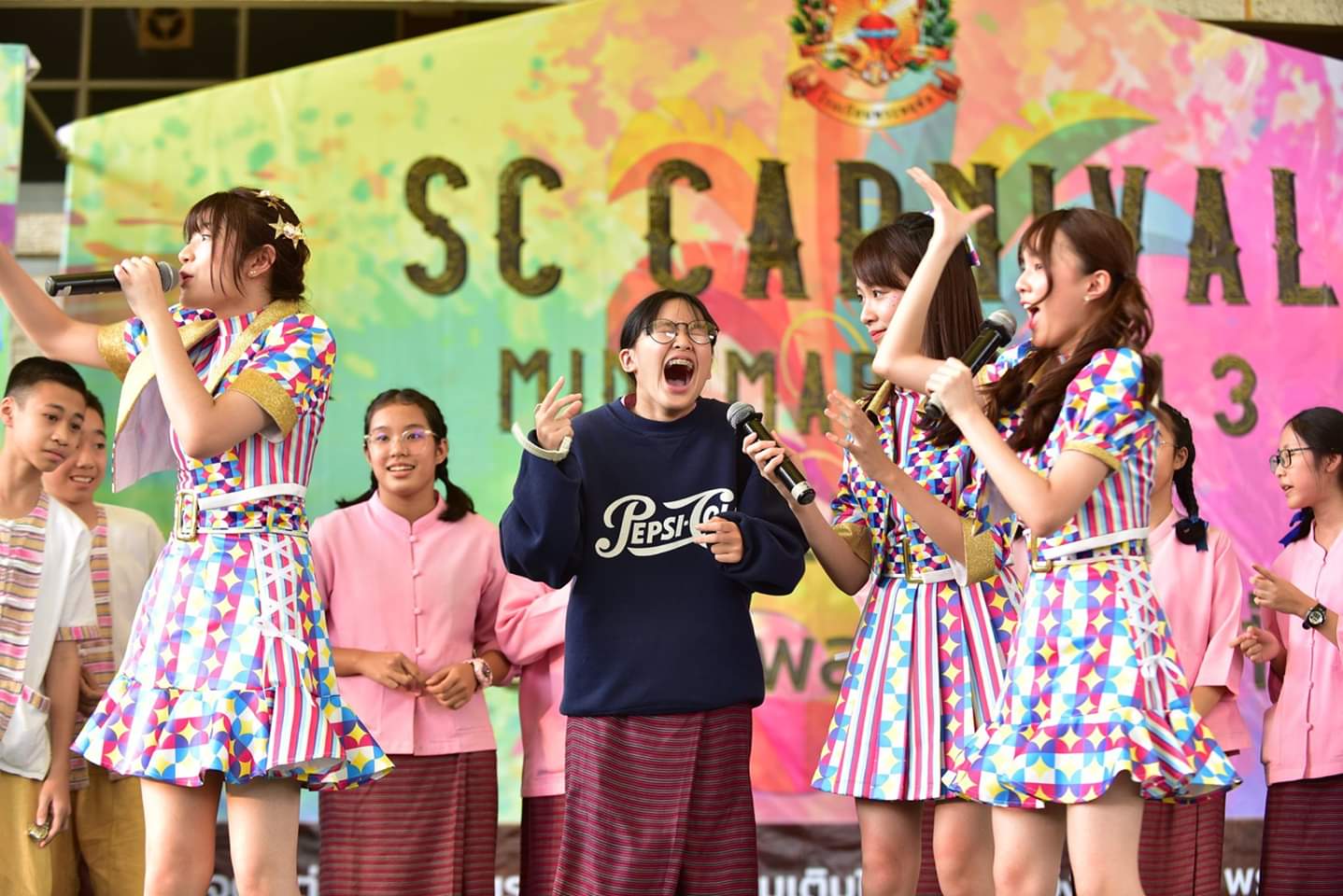 วง BNK48 ไป Road Show เชียงใหม่ วง CGM48 มา Road Show กรุงเทพ วง BNK48 ใส่ชุดเซ็มสีเขียว วง CGM48 ใส่ชุดเซ็มสีแดง