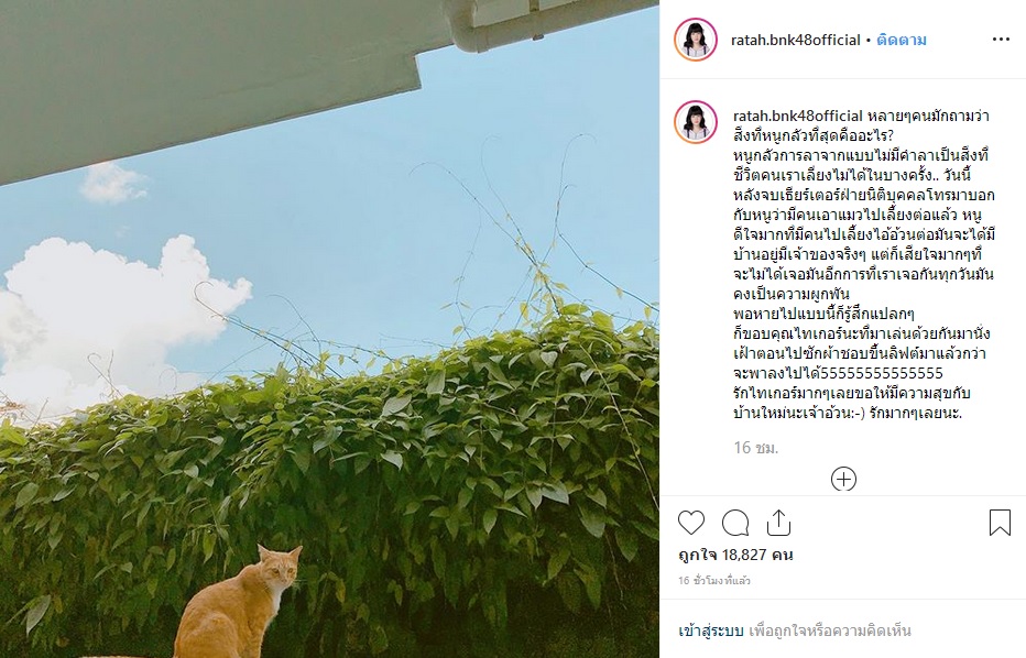 (รตา BNK48) เมื่อมีพบพาน ย่อมมีการลาจาก BYE BYE "เจ้าแมวไทเกอร์" ขอบคุณที่คอยเป็นกำลังใจให้ "น้องรตา" มาตลอดนะ!
