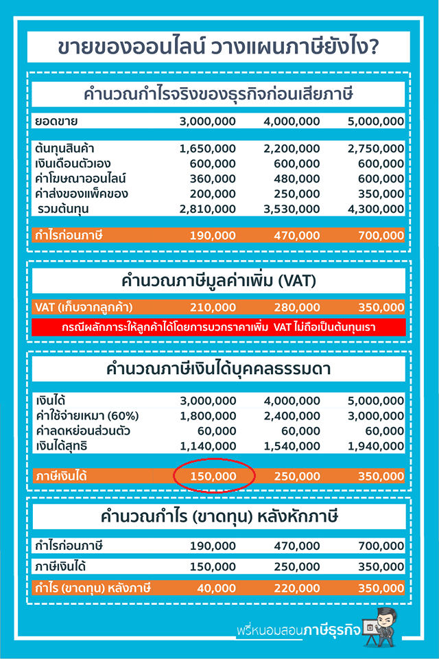 2.สอบถามเพิ่มสมมุติถ้าขายของซื้อมาขายไป 1,000,000 โดยยังไม่หักอะไรทั้งสิ้นไม่มีใบเสร็จจะต้องเสียภาษีเท่าไร