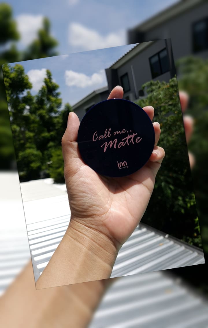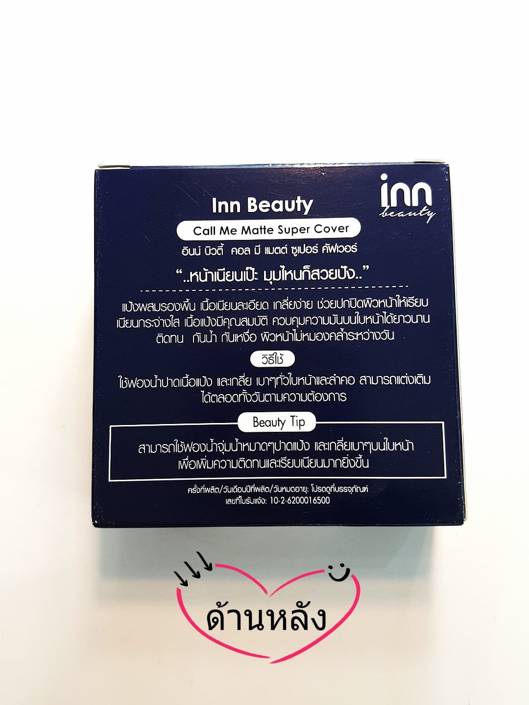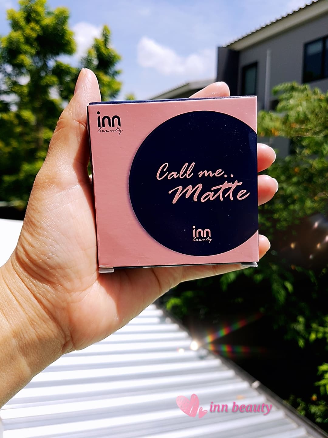 มาที่ตัวแรก นั่นก็คือ แป้งพัฟ ชื่อว่า INN BEAUTY Call Me Matte Super Cover (อินน์ บิวตี้ คอล มี แมตต์ ซูเปอร์ คัฟเวอร์) ราคา 159 บาท หน้าตาของกล่องเค้าจะเป็นแบบนี้ค่ะ