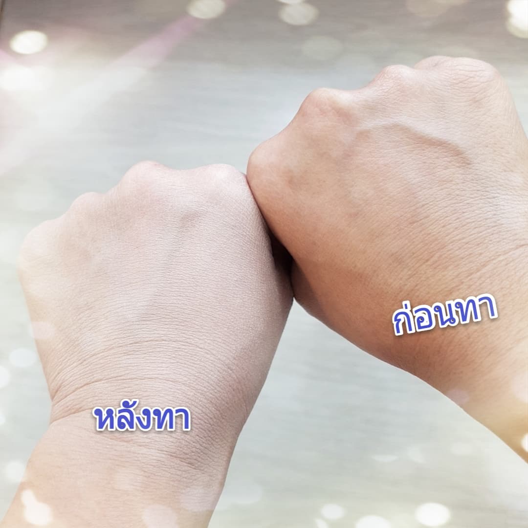 ลองทาที่มือดูก่อน จะเห็นได้ว่า แตกต่างกัน และข้างที่ทาก็ดูขาวขึ้น 1-2 ระดับ
