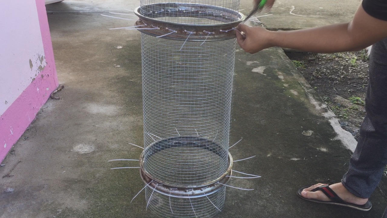 จากนั้นใช้เคเบิ้ลไทร์รัดตาข่ายให้ติดกับโครง