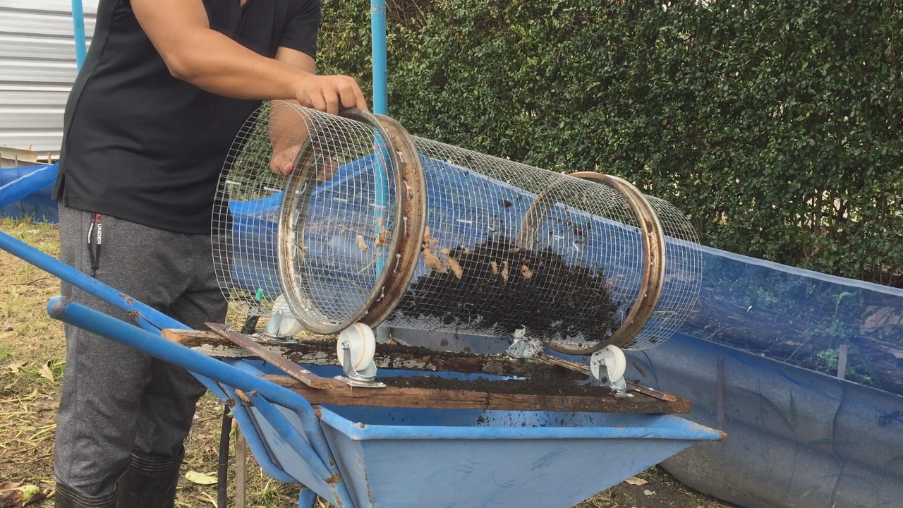 ดินที่ร่อนเสร็จแล้วก็เอาไปใส่ต้นไม้ได้ พวกหินก้อนใหญ่ๆก็จะตกลงด้านนอก