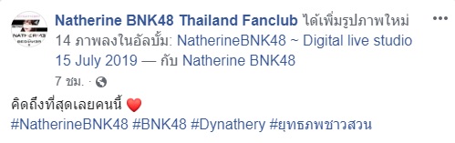 สมาคมคนตันแนท Natherine BNK48 https://www.facebook.com/tanoshi.natherinebnk48