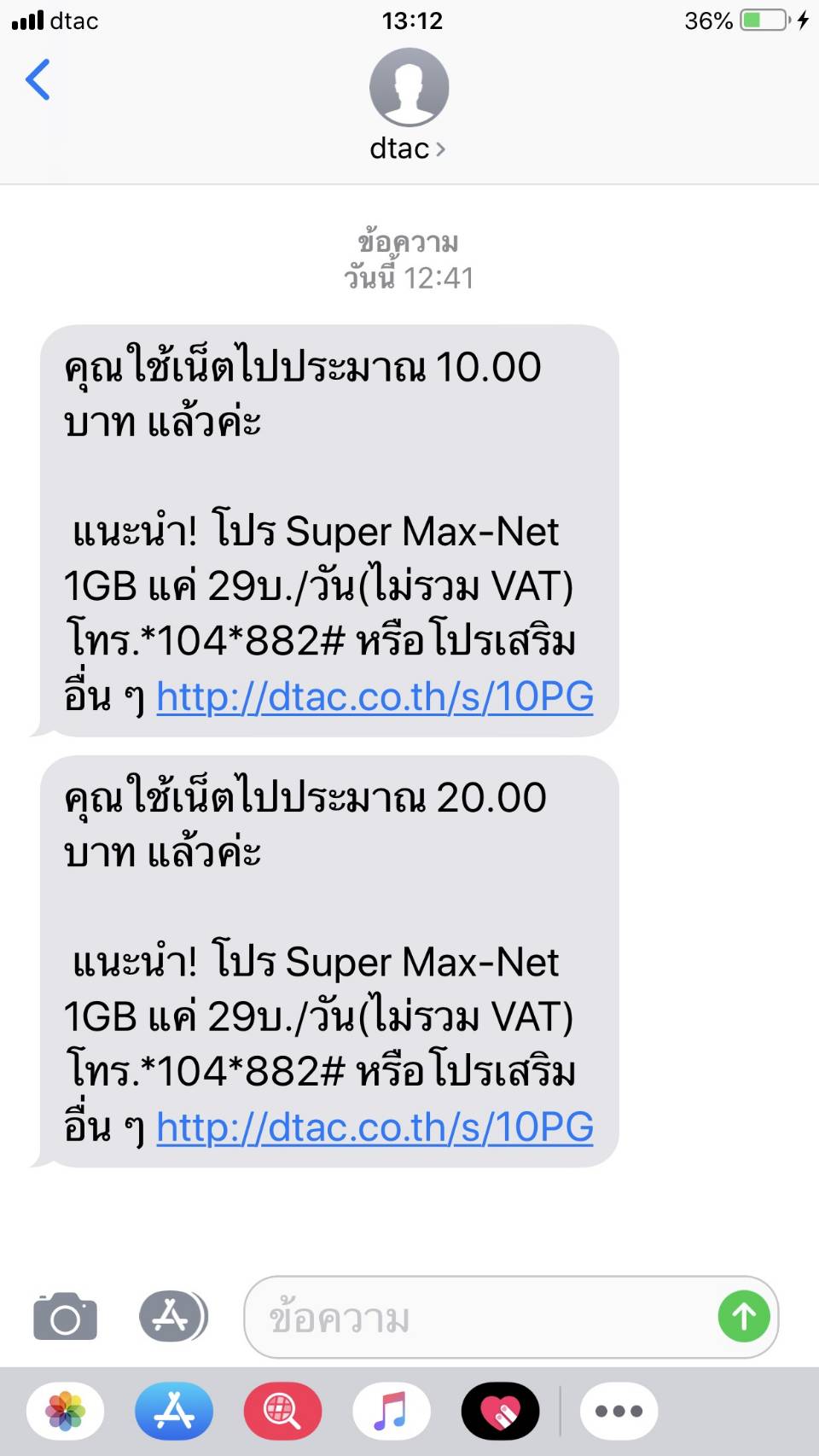 วันนี้แม่ของผมเปลี่ยนจากเครื่องโทรศัพท์ Nokia รุ่นพระเจ้าเหามาใช้ iPhone  (เครื่องเก่าของพี่สาว) วันนี้ไปทำซิมใหม่มาครับ พอกลับมาผมก็ทำการสมัคร apple ID แล้วเอาซิมใหม่ใส่เครื่อง iPhone เปิดใช้งานตามปกติ ตอนนี้ก็เชื่อต่อ wifi โหลดแอพต่าง ๆ ให้แม่ แล้วก็มี SMS เข้ามาดังภาพประกอบ สักพักก็มีมาอีกอัน ก็งงว่าตอนนั้นไม่ได้เปิด 4G หรือ 3G ใด ๆ เลย เชื่อม wifi ตลอด เลยงงว่าเกิดอะไรขึ้น หรือเน็ตไหล ต้องแก้ไขอย่างไรครับ