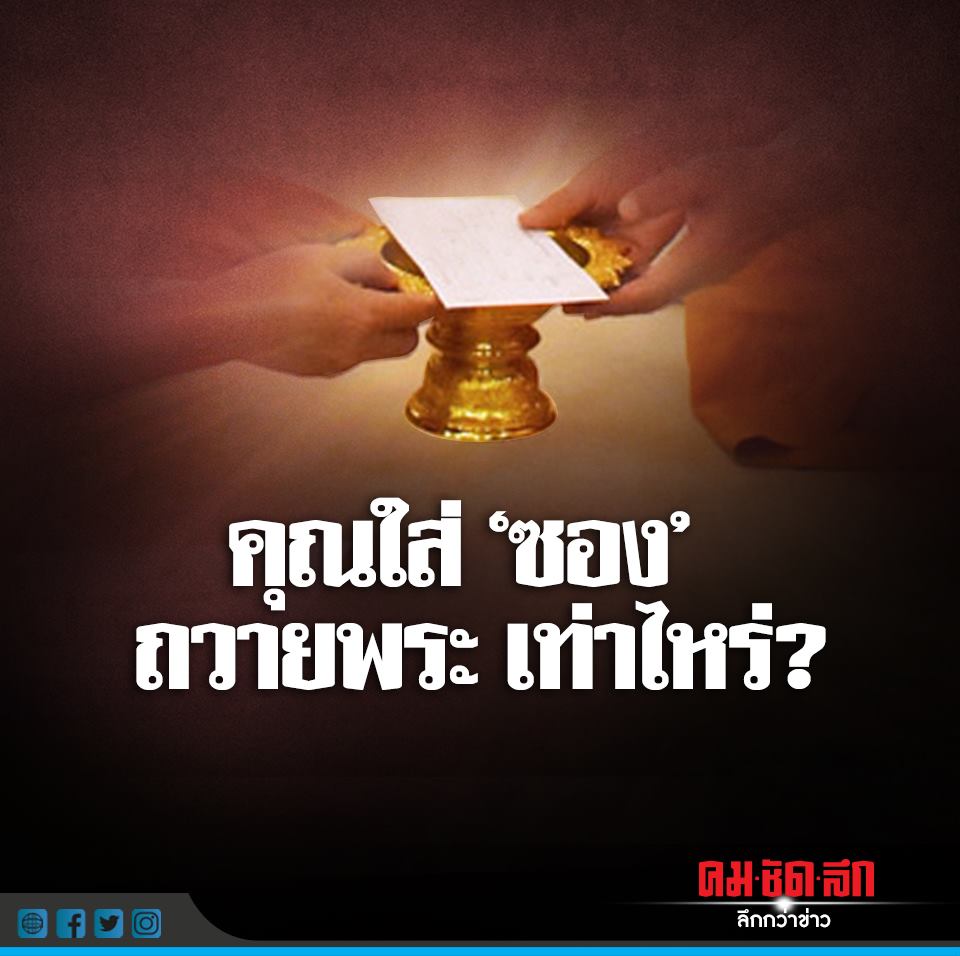 การถวาย ‘ซอง’ แด่พระสงฆ์เป็นธรรมเนียมที่ชาวพุทธคุ้นเคย ไม่ว่าจะเป็นพระที่มีสมณศักดิ์ตลอดจนพระทั่ว ๆ ไป จากเสียงสะท้อนของผู้คนที่นิยมทำบุญ ทำทาน ยอมรับว่า การใส่ซองเกิดขึ้นจริง แต่จำนวนเงินในซองนั้นมีความแตกต่าง