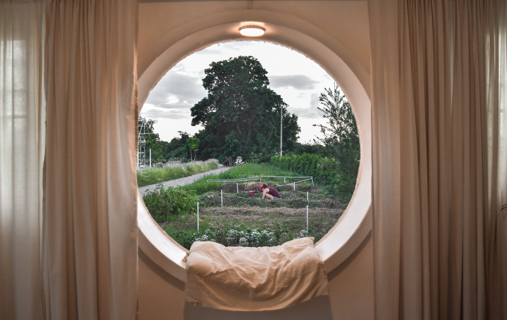🏠 ที่นี่มี 2 บ้านสำหรับนักท่องเที่ยวที่อยากมาแลกเปลี่ยนพลังงานดีๆกันนะคะ คือ บ้านนก ( จะมีเอกลักษณ์คือมีหน้าต่างวงกลมมองออกไปจะเห็นแปลงผักข้างนอก น่ารักมากๆค่ะ ) และบ้านดิน ( บ้านหลังนี้ทำจากดินทั้งหมด ซึ่งพี่ๆไปศึกษาและสร้างกันเองเลยค่ะ สุดยอดมาก )