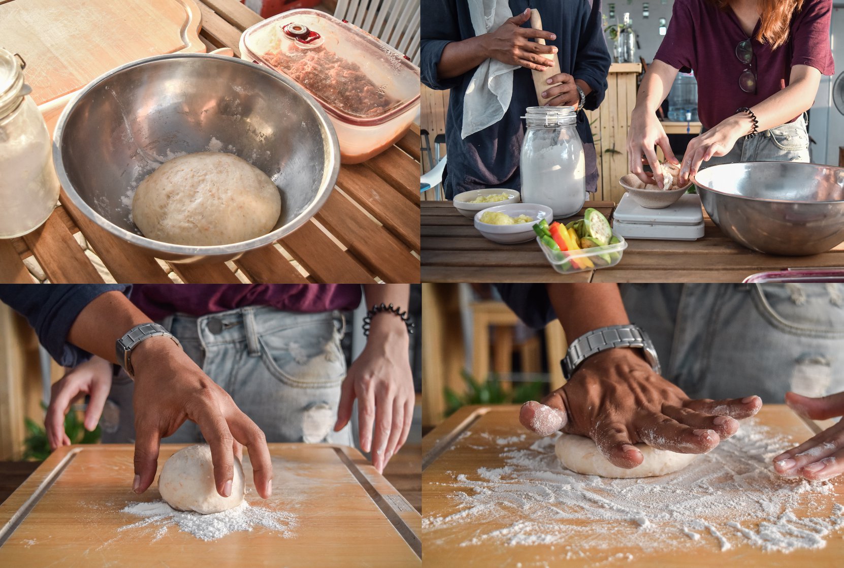 ทาดาาาาา ! หลังจากนั้นก็มาถึงเวลาที่พี่กุ้งจะสอนทำพิซ๋าโฮมเมดค่า ซึ่งเป็นครั้งแรกของเราเลย ตื่นเต้นมากกกก ขอบอกก่อนว่ากิจกรรมที่นี่ไม่แน่นอน ไม่กำหนดตายตัวนะคะ เพราะงั้นทุกอย่างชิวๆค่ะ ได้ทำอะไรก็แปลกใหม่สำหรับทุกอย่างเลย เริ่มทำจากการนวดแป้งโฮลวีคที่พี่ๆทำเองอีกแล้ววว มีการชั่งและนวดแป้ง จนไปถึงทาซอสพิซซ่า ซึ่งพี่ๆก็ทำเองอีกเช่นกันค่ะ จากนั้นตกแต่งหน้าด้วยผักแล้วโรสชีส เป็นอันเสร็จ รอดูหน้าตาของเจ้าพิซซ่านี้ด้วยความตื่นเต้นมากๆเลย