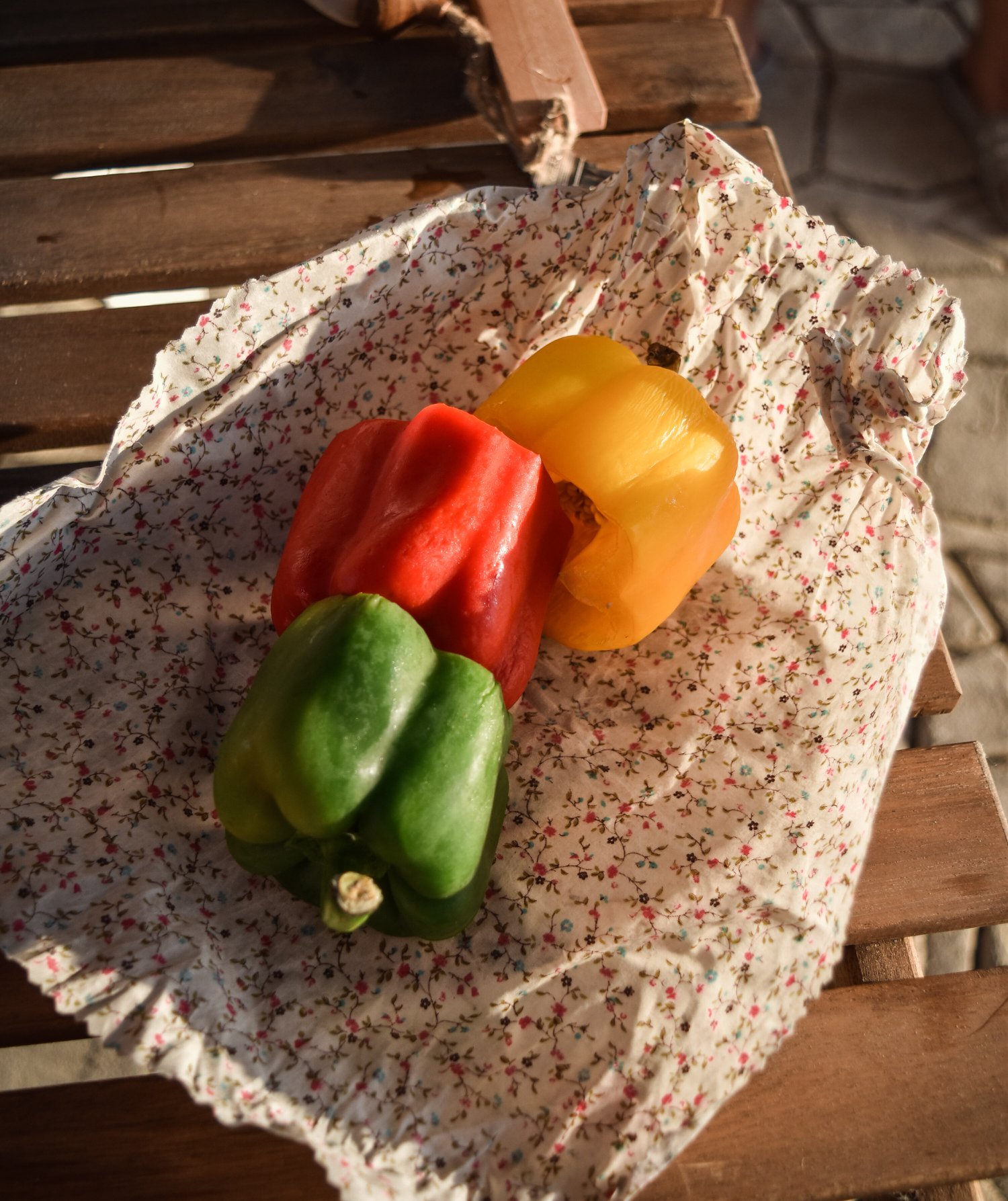 ขอแถมความรู้เล็กๆน้อยๆจากพี่ๆนะคะ เราว่าหลายๆคนยังไม่เคยรู้ว่าปกติเรามักใช้ plastic wrap ในการปิดฝาภาชนะแล้วเอาใส่ตู้เย็น หรือใช้ในการถนอมอาหารให้ผักผลไม้ไม่เหี่ยวใช่มั้ยคะ แต่รู้มั้ยว่าเราสามารถลดการใช้พลาสติกพวกนี้ได้จากการใช้ Bee wax wrap นั่นเองค่ะ ในรูปก็คือผ้าลายลูกไม้ที่ใช้ห่อนี่แหละค่ะ พี่ๆเค้านำมาใช้จริงและพบว่าอาทิตย์กว่าแล้วผักที่ห่อไว้แทบไม่เหี่ยวเลย อันนี้เป็นความรุ้ใหม่ที่เรารู้สึกว้าวมากๆ พี่ๆเลยถามว่าอยากลองทำมั้ย เรารีบตอบโดยไม่คิดเลย อยากทำค่ะ ! 555555555