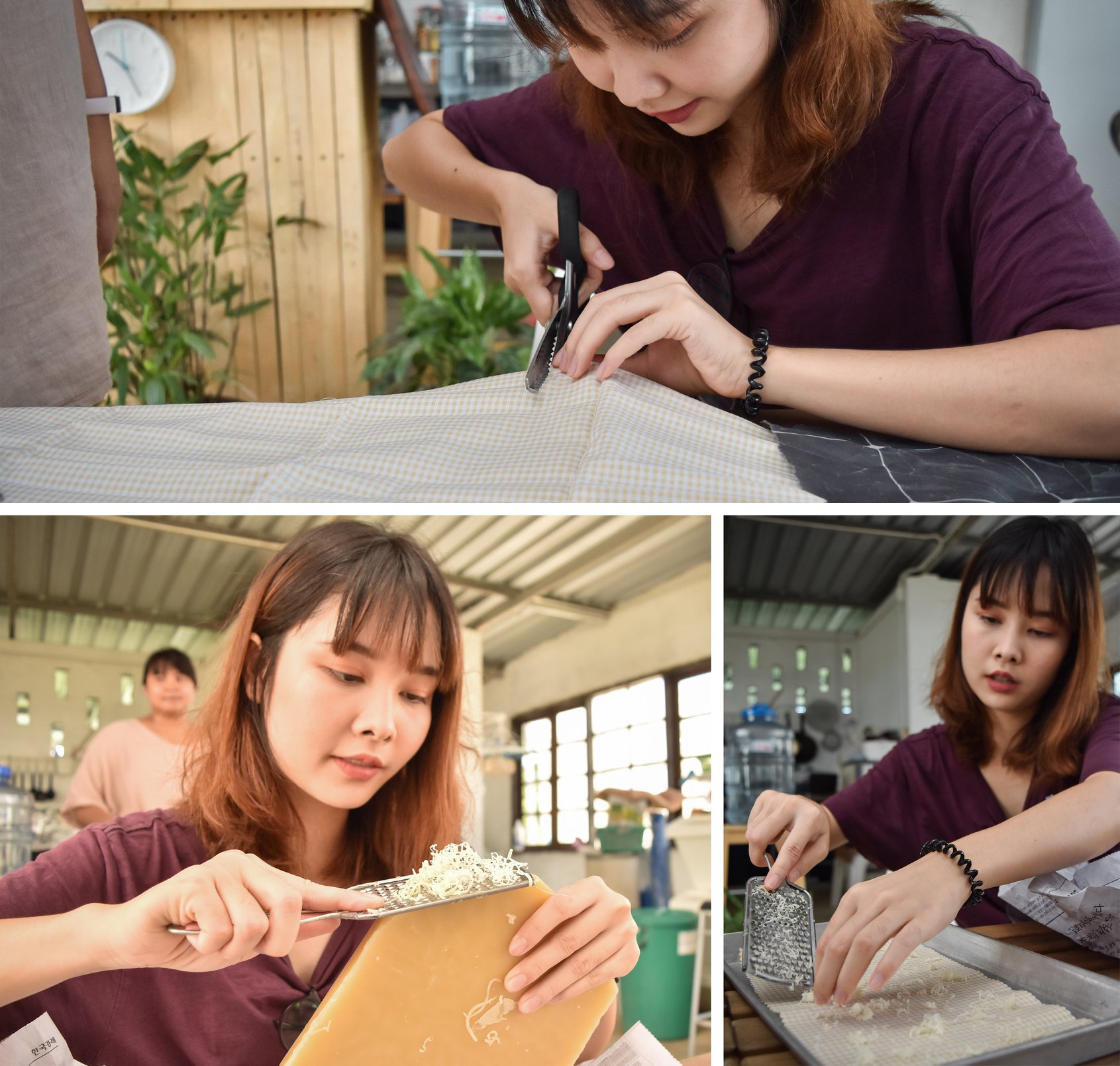 สุดท้ายได้ทำสมใจเลยจ้า พี่ๆพอทีเศษผ้าเหลือไว้อยู่เลยเอามาให้ลองทำดู เริ่มจากตัดแต่งขอบให้สวยๆแล้วขูดไขผึ้งโรยบนผ้าแบบนี้เลย มันง่ายมากเลยใช่มั้ยคะทุกคน เรารูสึกว่าบ่างอย่างเราสามารถหลีกเลี่ยงการใช้พลาสติกได้ง่ายๆเลยเนอะ เพียงแค่เราไม่รู้เท่านั้นเอง