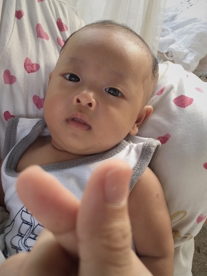 เราสัมภาษณ์แฟนช่วงที่เราอยู่ในห้องผ่าตัดว่าเป็นยังไงบ้าง นางก็เล่าให้ฟังว่า ระหว่างที่เราเข้าห้องไป นางก็รีบลงไปไหว้ศาลที่หน้าตึก ขอให้เราทั้งคู่ปลอดภัย เสร็จแล้วก็มานั่งรออยู่ข้างหน้า เห็นเขาเข็นตู้ที่มีเด็กออกมาจากห้องคลอด นางบอกว่านางเดินตามไปแบบไม่รู้ตัวเลย คิดว่าต้องใช่แน่ๆ ตามไปถึงในห้องเด็กอ่อน พยาบาลหันมาเห็นต้องรีบเชิญให้ออกมารอข้างนอก ก็เลยถามว่าเด็กคนนี้ใช่ลูกผมมั้ย ดูที่สายรัดข้อมือสรุปว่าใช่ นางก็ออกมายืนรอ แปปนึงคุณหมอเดินออกมาคุย บอกว่าต้องขอเช็คก่อนว่าจำเป็นต้องกระตุ้นปอดน้องรึป่าว เพราะน้องตัวเล็กมาก น้ำหนักแค่ 2.6 กก. /ความยาว 49 เซนติเมตร แต่สรุปตามที่บอกค่ะ น้องแข็งแรงดีมากไม่ต้องกระตุ้นปอดเลย