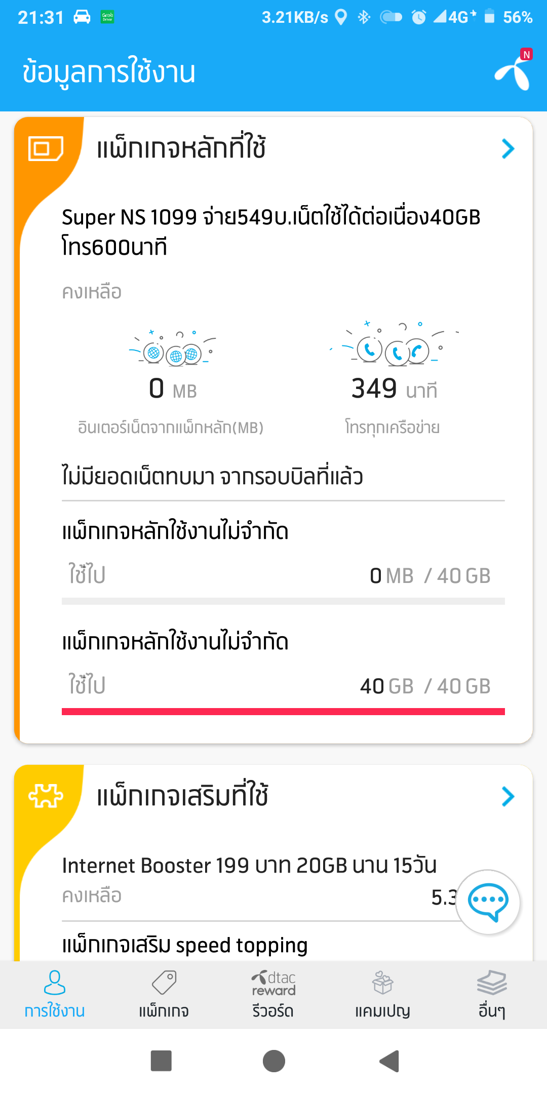 สวัสดีครับ พอดีคุณพ่อได้ใช้โปรเน็ตอยู่ซึ่งเป็นโปร PROMO_5GFullSpeed_299บ. เน็ตใช้ได้ต่อเนื่อง 40GB โทร 100 นาที ซึ่งตามการใช้งานทั่วไปแล้วช่วงนี้คุณพ่อใช้เน็ตไม่ได้มากมายขนาดนั้น + กับการโทรที่ยังใช้