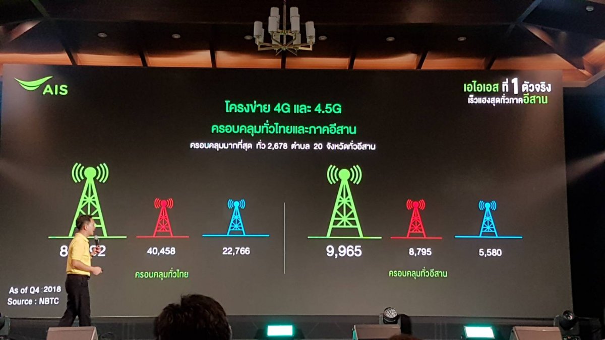 และที่ผ่านมา AIS ได้ขยายโครงข่าย 4G และ 4.5G ครอบคลุมทั้ง 2,678 ตำบล 20 จังหวัด ทั่วภาคอีสาน ด้วยจำนวนสถานีฐาน 9,965 แห่ง จึงสามารถรองรับการขยายตัวด้านการใช้งานได้อย่างมี ทั้งยังขยายเครือข่าย AIS Fibre ครอบคลุมแล้ว 16 จังหวัดภาคอีสาน หรือ 25,711 จุดบริการ เพื่อรองรับความต้องการใช้งานที่เพิ่มมากขึ้น โดยมีจำนวนผู้ใช้งานกว่า 1.1 แสนราย เติบโตกว่า 12% เมื่อเทียบกับปี 2561