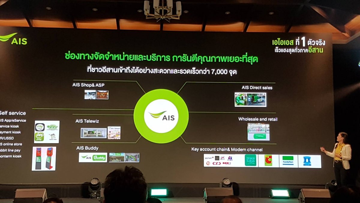 รวมถึงขยายช่องทางการจัดจำหน่ายที่ชาวอีสานเข้าถึงได้อย่างสะดวกและรวดเร็วกว่า 7,000 จุด พร้อมจัดรถ Mobile Service Car ซึ่งเปรียบเสมือน AIS Shop เคลื่อนที่ ลงไปให้บริการในระดับหมู่บ้านทั่วภาคอีสาน ทั้งในงานประเพณีท้องถิ่นและงานกิจกรรมระดับตำบล