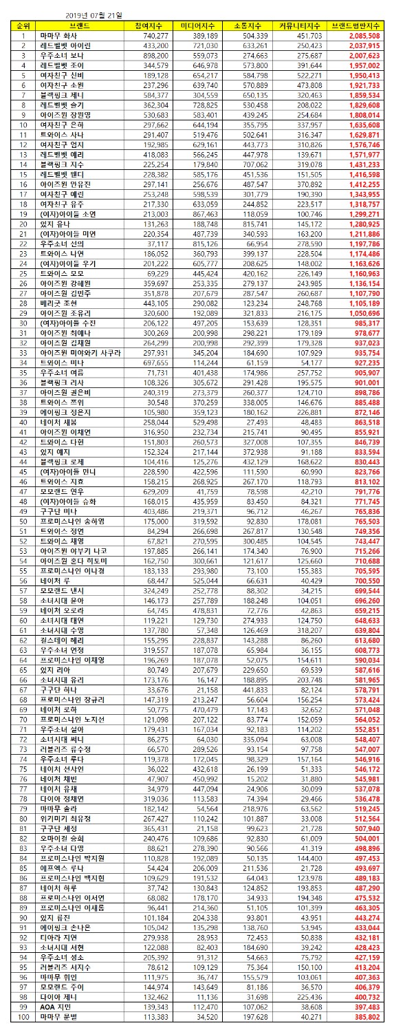 [K-POP] Girl Group Member Brand Rankings • July 2019