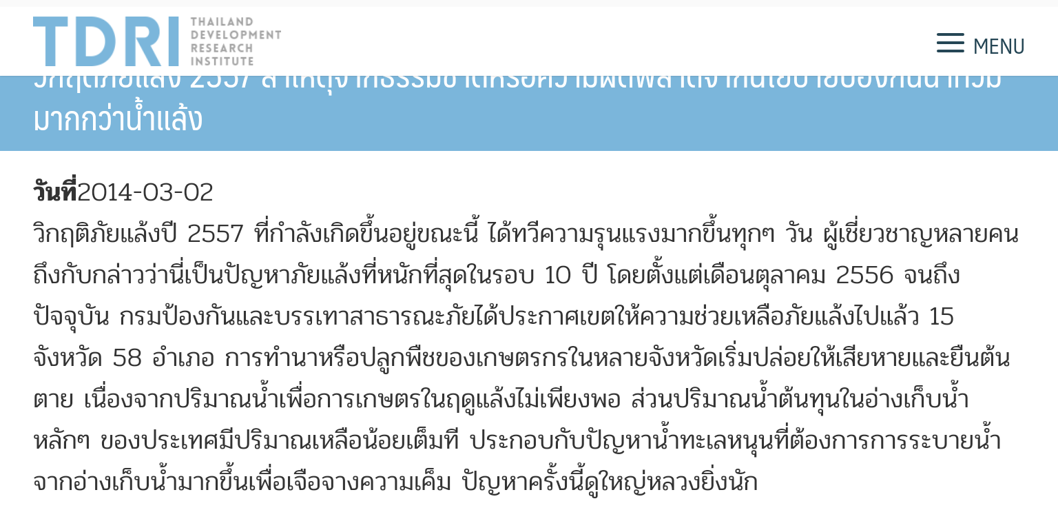 ภัยแล้ง อุทกภัย เกิดในรัฐบาลยิ่งลักษณ์อย่างแสนสาหัส