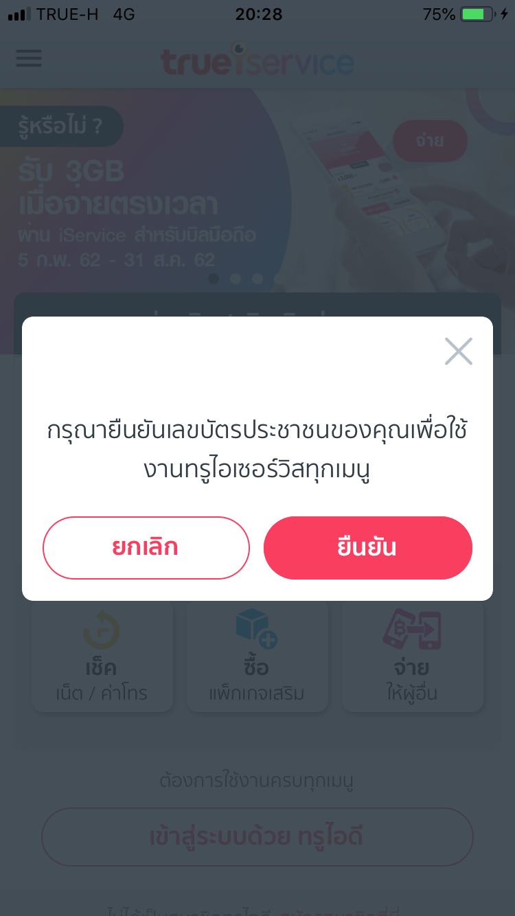 True iService เข้าสู่ระบบด้วย TrueID ไม่ได้