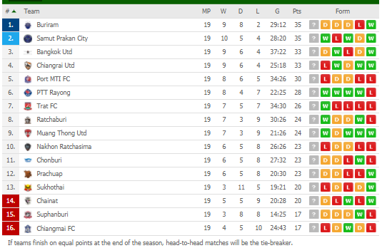 ตารางคะแนนไทยลีก นัดที่ 19 สมุทรปราการขึ้นอันดับ 2 เชียงรายหล่นไปอันดับ 4