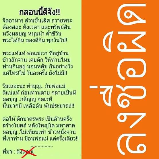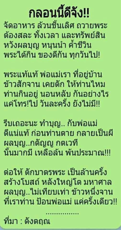 อีกอย่างเนื้อหาบทกลอนเหมือนผู้เขียนต้องการประชดประชันคนที่ชอบทำบุญกับวัด แล้วก็ใช้การเปรียบเทียบที่ไม่เหมาะสม เราทำบุญกับพ่อแม่ก็ย่อมได้บุญ แต่จะมาเทียบว่าทำบุญกับพระล้านครั้งไม่เท่าป้อนข้าวพ่อแม่หนึ่งครั้งอันนี้เวอร์ไป ปกติคนที่มาในทางธรรมจริงๆเค้าจะไม่คิดลักษณะนี้ เพราะจริงๆการเลี้ยงดูแลพ่อแม่ถือเป็นหน้าที่ที่ต้องทำอยู่แล้ว ไม่ใช่คิดว่าทำเพราะเอาบุญ