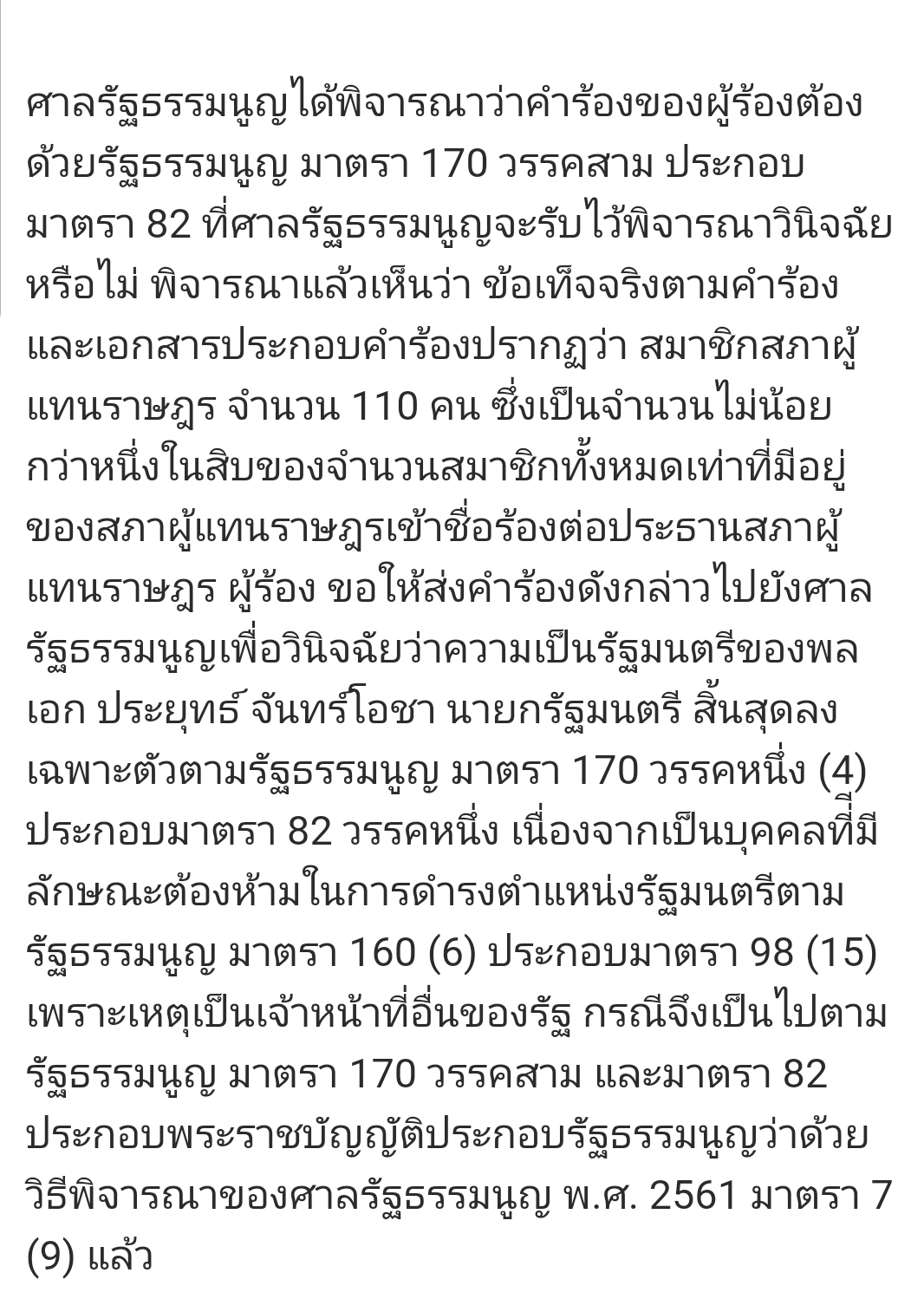 ⏺⏺มาลาริน/ตามคาดค่ะ...มติศาลรธน.รับวินิจฉัยปมคุณสมบัติ'บิ๊กตู่' แต่ไม่ต้องหยุดปฏิบัติหน้าที่