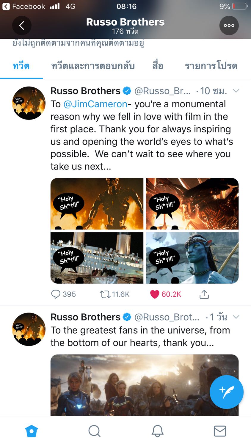 สองพี่น้องผู้กำกับ Russo ลงtwitter ตอบกลับ Jim cameron