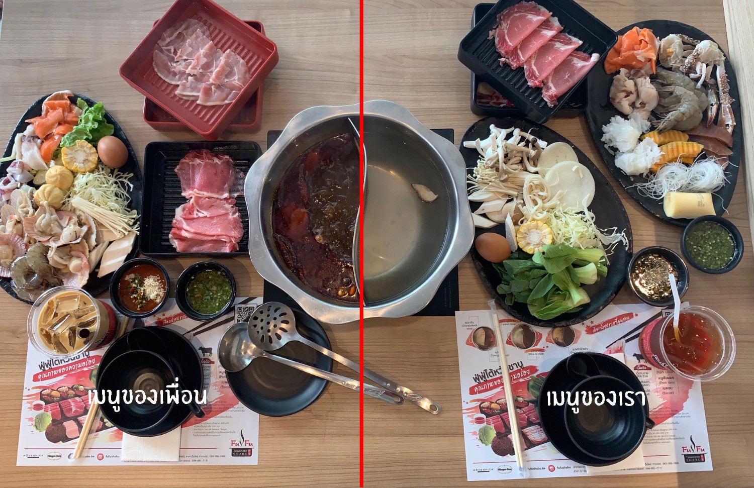 ที่เห็นในรูปก็คงคิดว่าไม่ค่อยแตกต่างเท่าไร แต่จริงๆแล้วมันต่างนะคะ คือเราเลือกกินมากกว่า ส่วนเพื่อนเลือกในสิ่งที่มันชอบกินแบบสบายใจ มาดูกันว่าเราเลือกอะไรมาบ้าง
