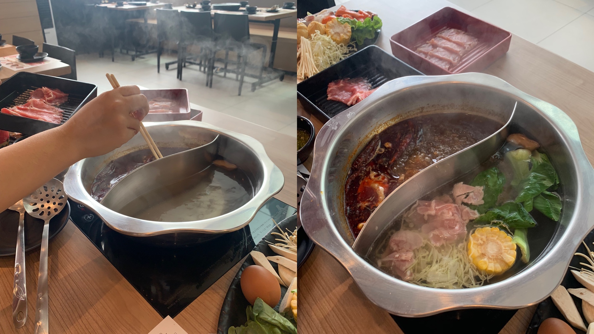 1. น้ำซุป ที่นี่สามารถเลือกได้ 2 น้ำซุป เราเลยเลือกซุปเห็ดหอม เพราะดูรสชาติไม่จัดดี