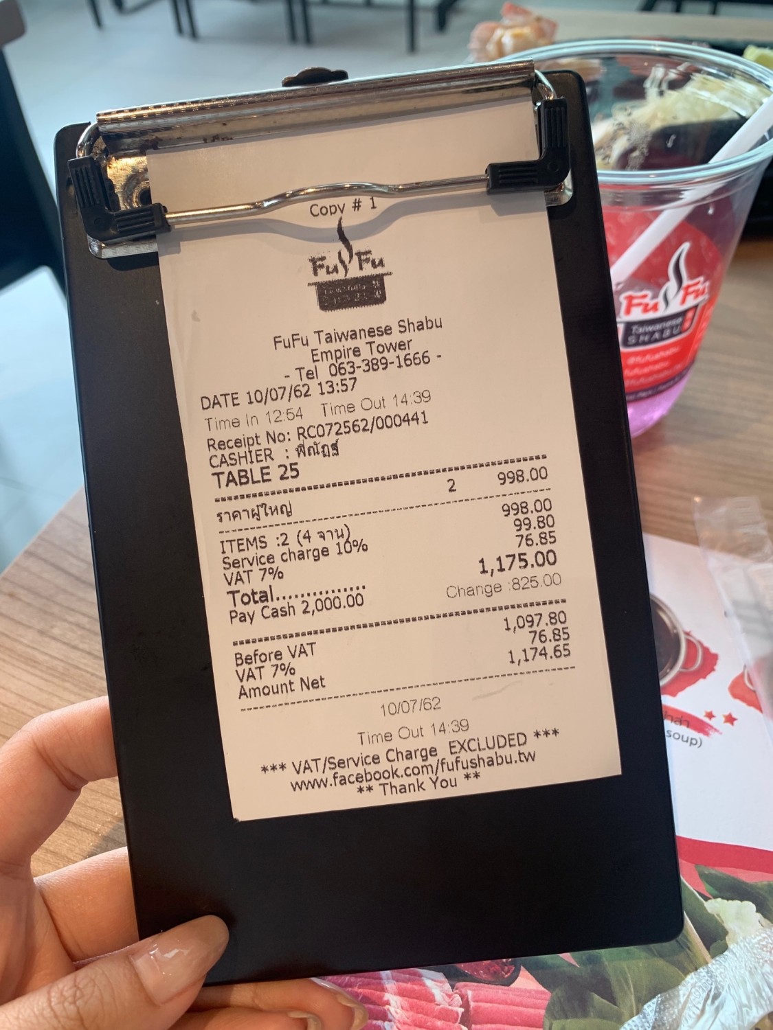 ช่วงประมาณเที่ยงก็ถึงเวลานัดกับเพื่อนพอดี เราเลือกไปกินที่ Fufu Shabu เพราะเพื่อนเราเคยกินละบอกว่าอร่อยดี ของเยอะ มันเลยแนะนำที่นี่ เพราะจะได้เลือกกินหลายอย่างที่เหมาะกับสายฟิตเนสแบบเรา ถึงที่ร้านได้เห็นกับตาว่าของเยอะมาก ทั้งผัก เนื้อสัตว์ ซีฟู้ด ลูกชิ้น เยอะยันน้ำจิ้ม จนไม่รู้ว่าจะเริ่มจากตรงไหนก่อนเลย