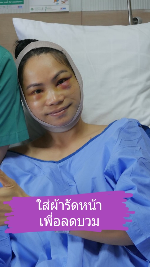 หลังเอาสายระบายเลือดออก หมอจะให้ใส้ผ้ารัดหน้าเพื่อลดอาการบวม หมอให้ใส่ทั้งวัน ประมาณ 7 วัน