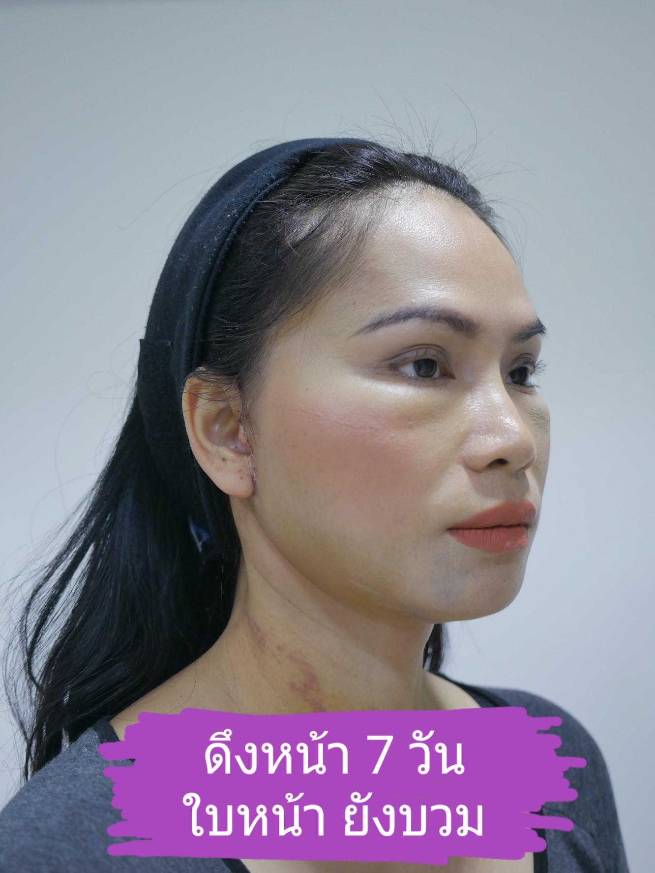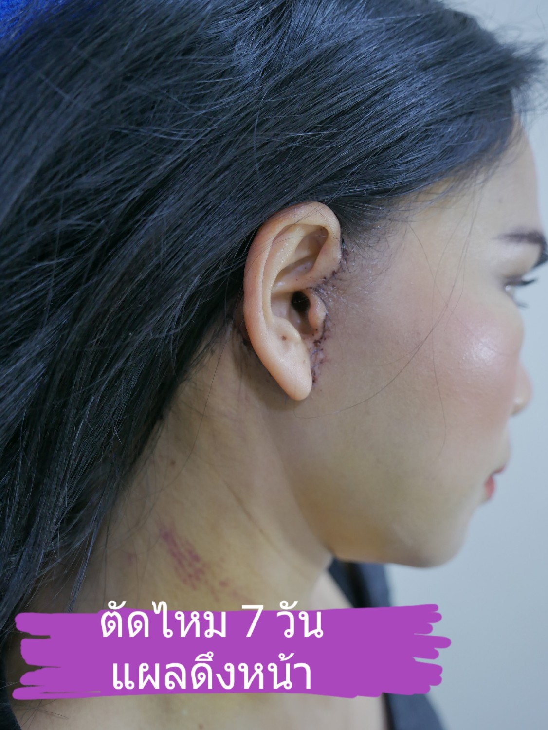 ในช่วง 7 วันแรกจะตัดไหม บริเวณหน้าหู ที่เดียว ในส่วนของ บริเวณขมับ กับ บริเวณหลังหู จะตัดตอน 14 วัน