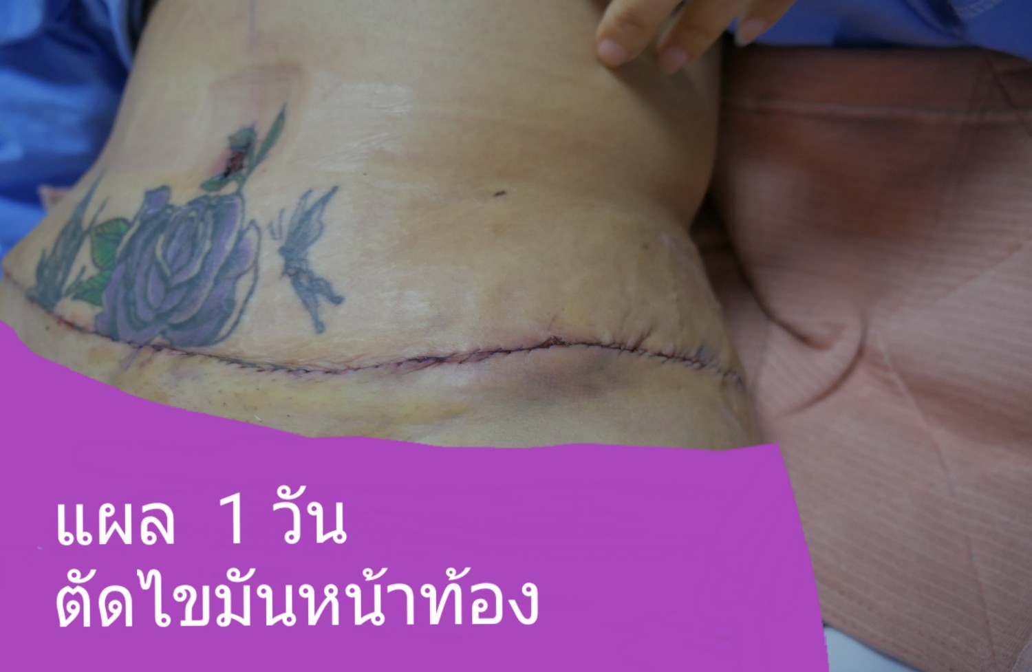 หลังทำพุงย้วยๆ หายไป หลายคนเห็นแผลแล้วแอบตกใจ แต่เราศึกษามาแล้วว่าแผลจะออกมาเป็นแบบนี้ แต่ แผลตัดไขมันหน้าท้อง แผลจะอยู่แนวขอบบิกินี ซึ่งจะมองไม่เห็นแผล ช่วงแรกๆ แผลจะตึงมาก ต้องเดินหลังค่อมๆ นิดนึงในช่วงสัปดาห์แรก