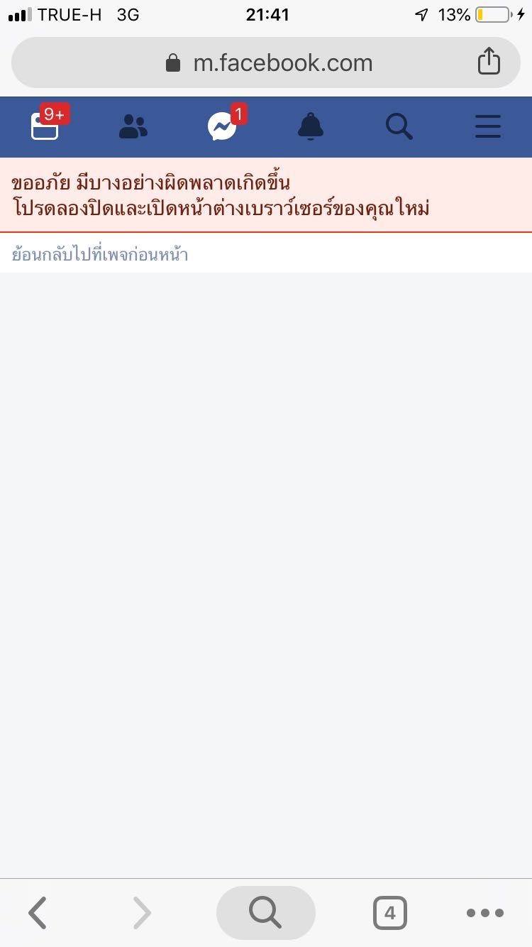 กดแล้ว ระบบแจ้งว่า ขออภัย มีบางอย่างผิดพลาดเกิดขึ้น โปรดลองปิดและเปิดหน้าต่างเบราวร์เซอร์ของคุณใหม่ ตามรูปภาพ