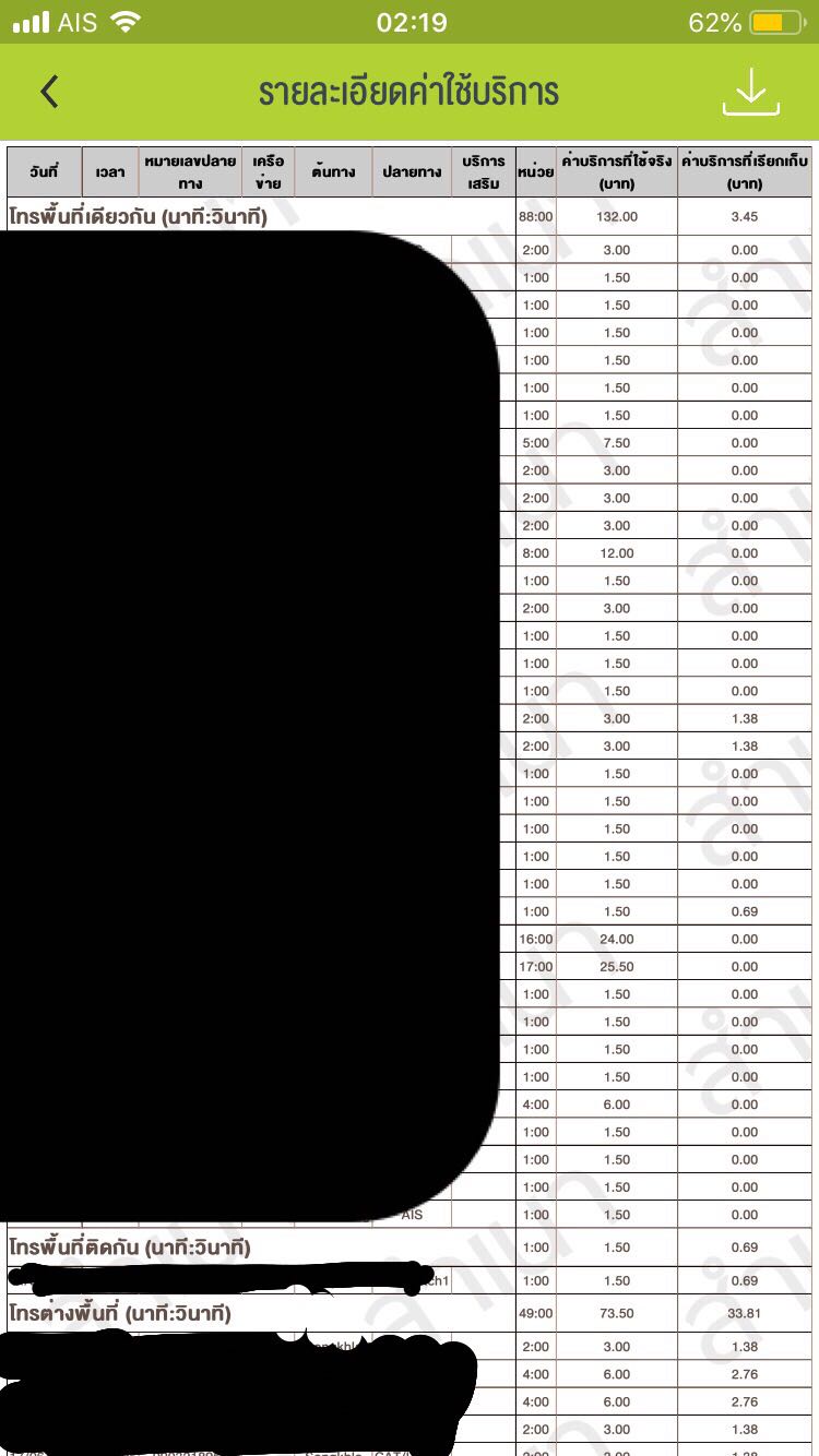 AIS ยอดค่าโทรเกินกับค่าบริการสุทธิในบิลไม่สอดคล้องกัน