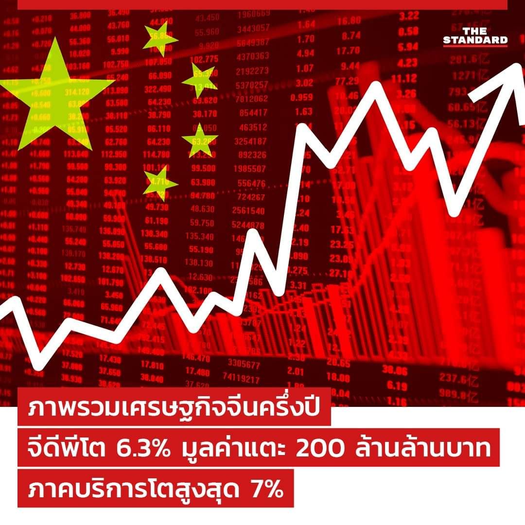 ### UPDATE >>> ภาพรวมเศรษฐกิจจีนครึ่งปี จีดีพีโต 6.3% มูลค่าแตะ 200 ล้านล้านบาท ภาคบริการโตสูงสุด 7% ..!!