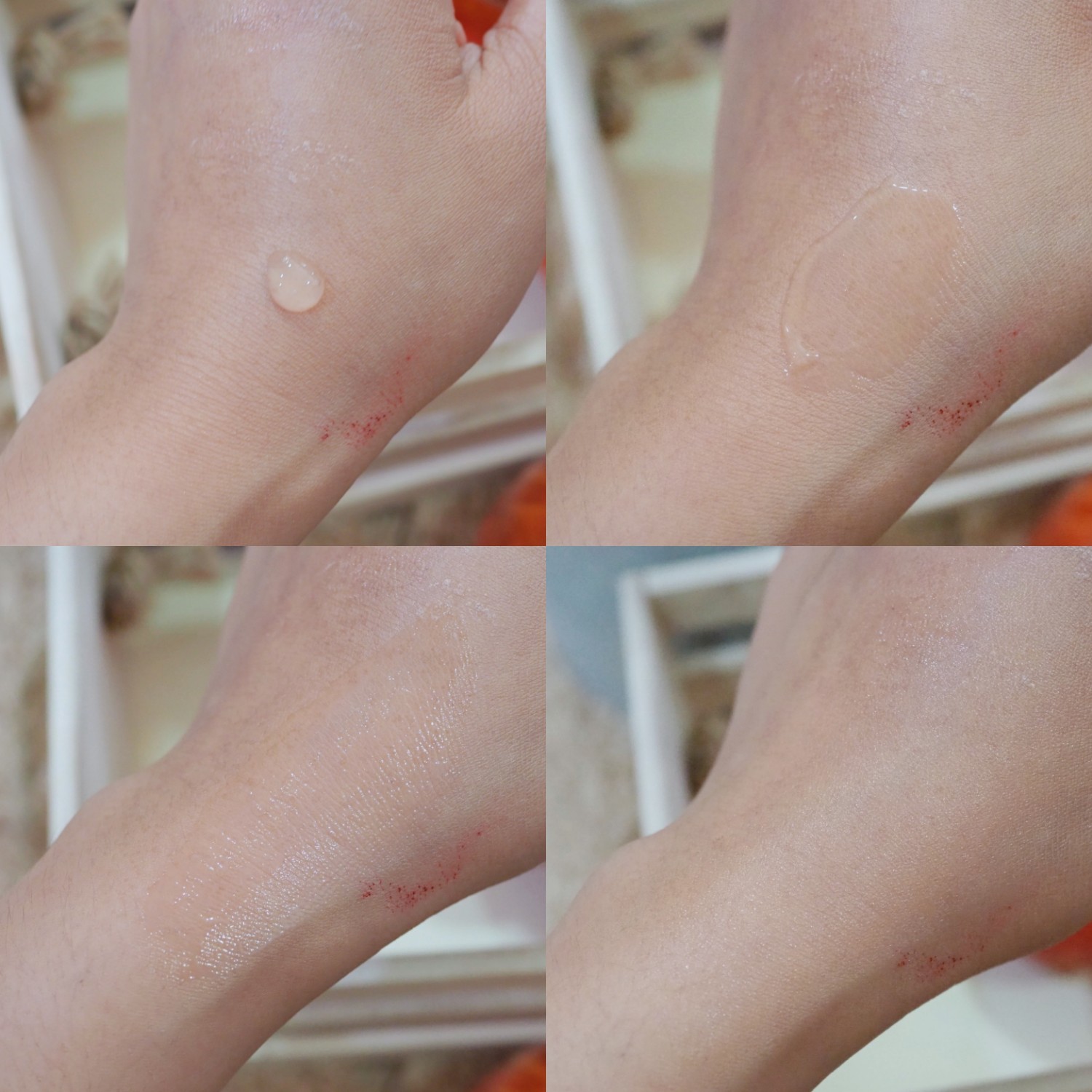 เนื้อเจลเค้าจะเป็นเนื้อใสๆ บางเบา ไม่อุดตันผิว ซึมเข้าสู่ผิวได้เร็ว