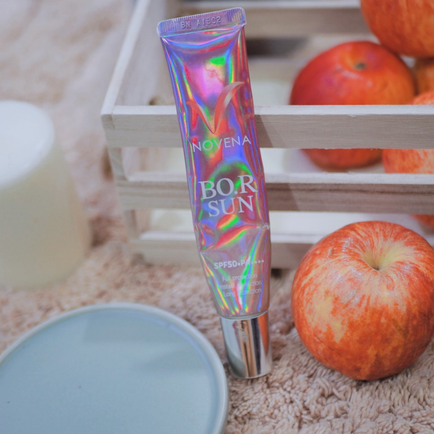 ตัวที่สี่เราจะมาพูดถึงกันแดดกันบ้าง NOVENA BO.R SUN SPF50+PA++++ ตัวนี้จะเป็นกันแดดผสมบำรุง