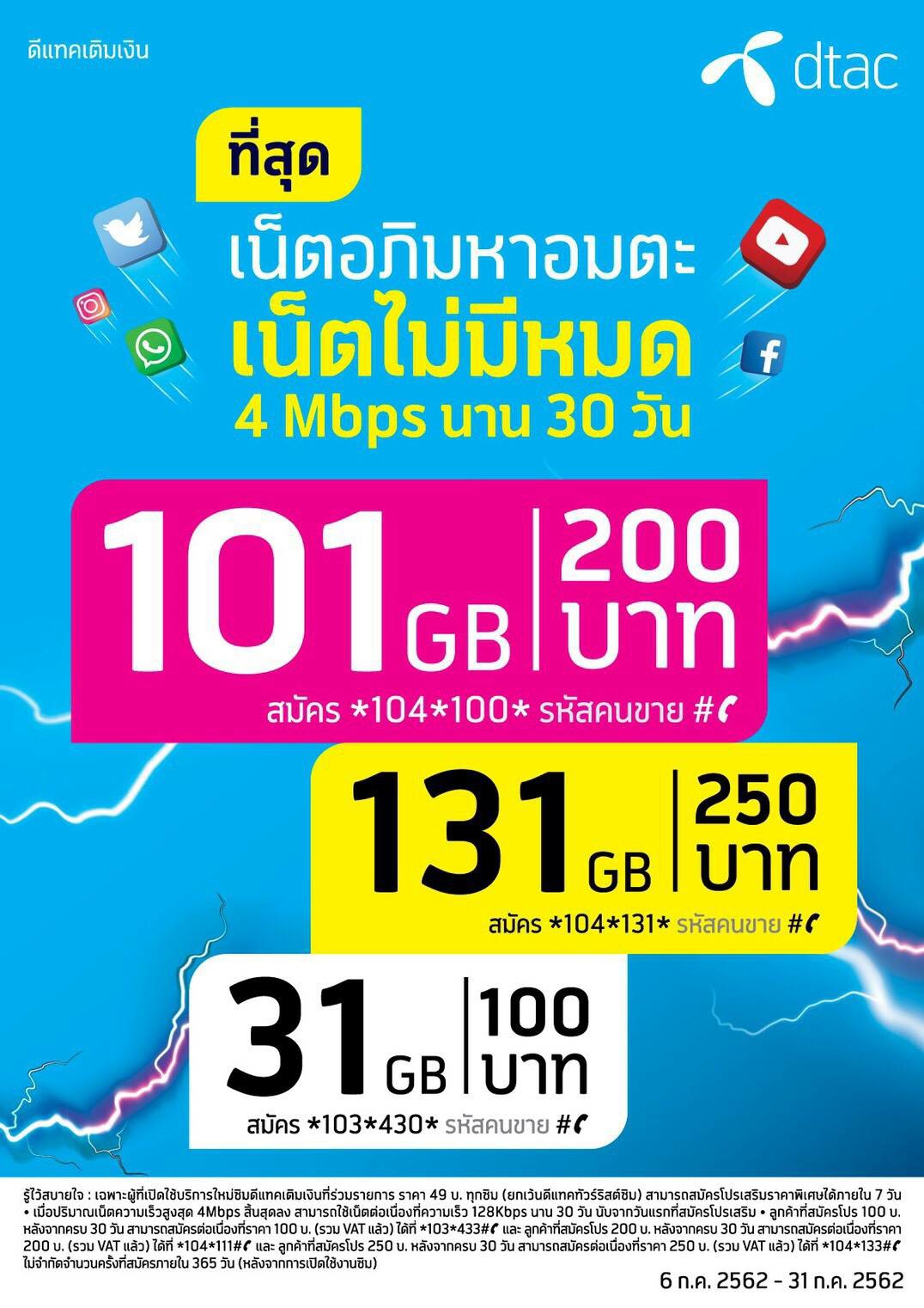 Dtac เน็ตอภิมหาอมตะ 31GB 100 บาท ( หลอกกันอีกแล้ว )