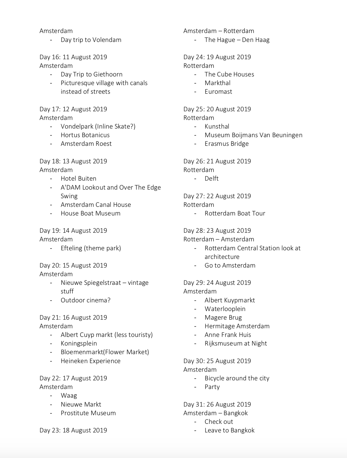 แผนเดินทางทั้งหมด 32 วัน อยู่เนเธอร์แลนด์ 17 คืน กรีซ 13 คืน