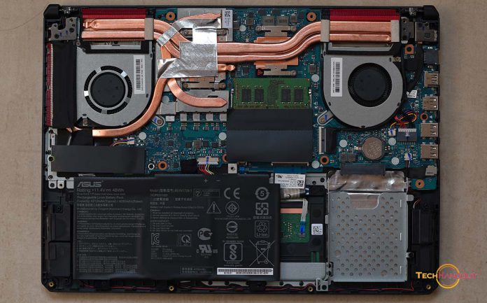ตัวระบายความร้อนทำได้ดี และมีท่อ heatsink ระบายความร้อนที่มากกว่ารุ่น FX505DT อย่างชัดเจนครับ ฝาหลังเมื่อเปิดออกมาแล้วจะเจอช่องสำหรับใส่ HDD ได้สบายครับถ้ารุ่นที่มาเป็น SSD สามารถเพิ่ม HDD ได้สบายๆส่วนพัดลมมาพร้อมพัดลมคู่ และ ระยะดักฝุ่นแบบรุ่นพี่ รวมถึงสามารถเพิ่ม RAM ได้อีก 1 แถว ถ้ารุ่นที่มาพร้อม RAM 8 GB นะครับ และสูงสุด 32GB เลยทีเดียว การอัพเกรดอะไรทำได้ไม่ยาก และรองรับทั้งการเปลี่ยน HDD /SSD /RAM ได้สบาย ถือว่ายังคงเด่นในเรื่องการอัพเกรดอะไรอยู่พอสมควรและแน่นอนว่าทำได้ดีรวมถึง