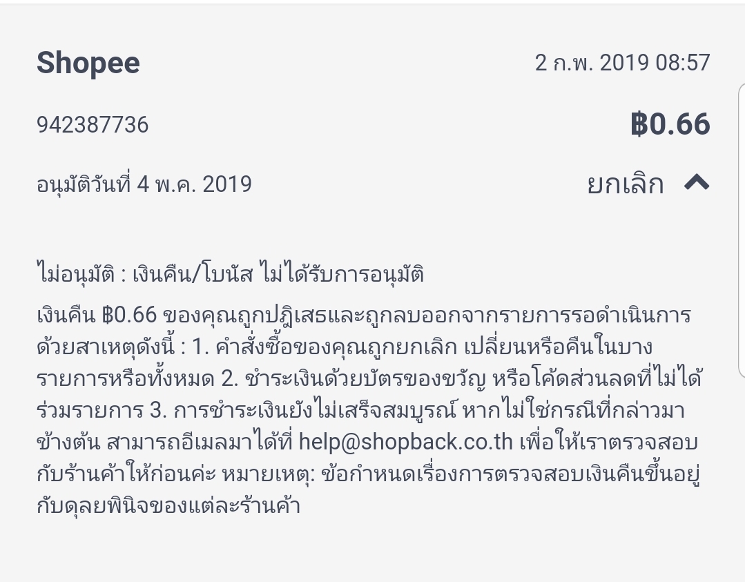 ยกเลิกสินค้า lazada ไม่คืน e-voucher shopback?