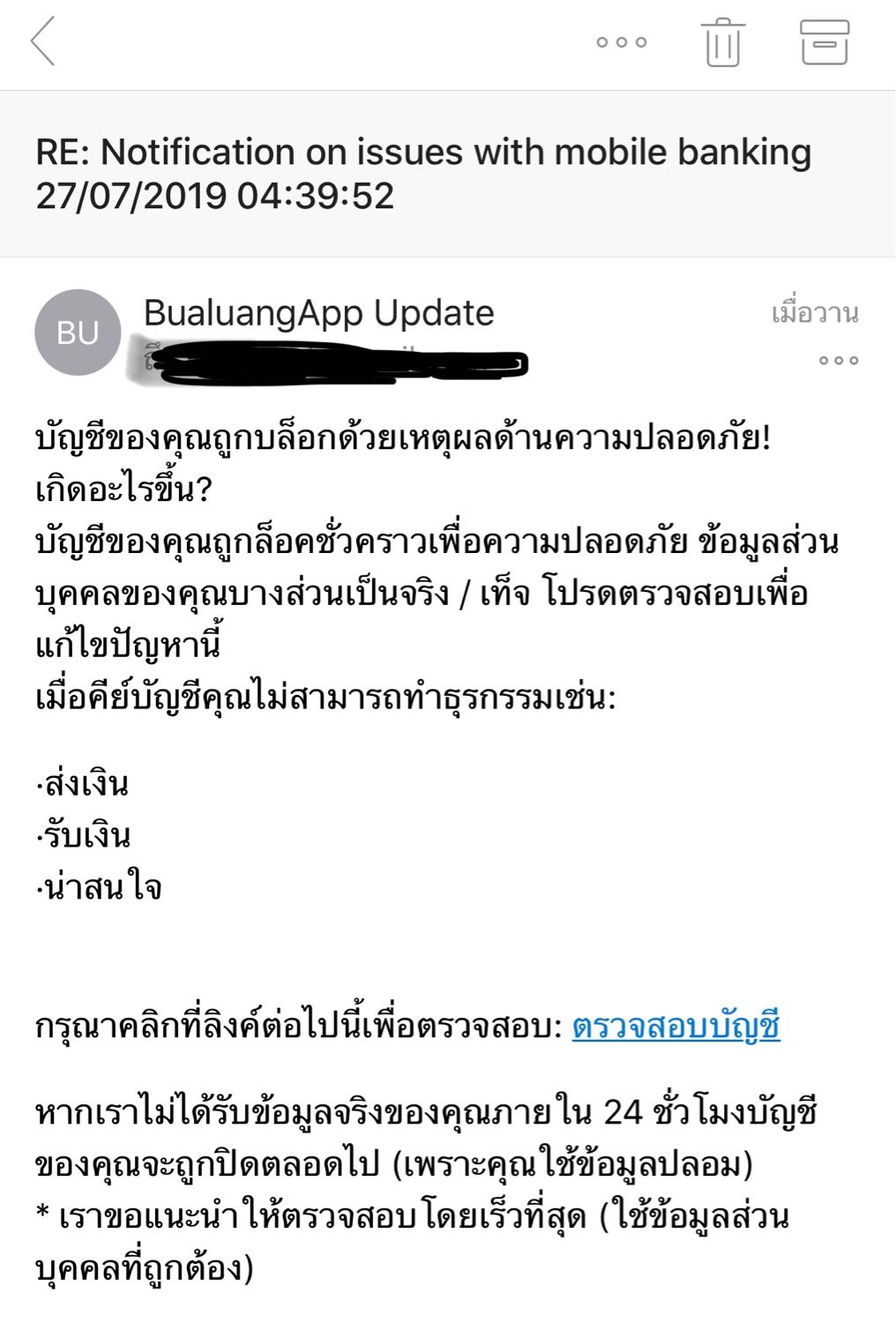 จากรูป เป็นอีเมลล์ปลอม ที่กำลังระบาด เลยอยากถามผู้รู้ครับ ว่าเขารู้ได้อย่างไรว่าข้อมูลอีเมลล์ผมผูกกับธนาคารใด