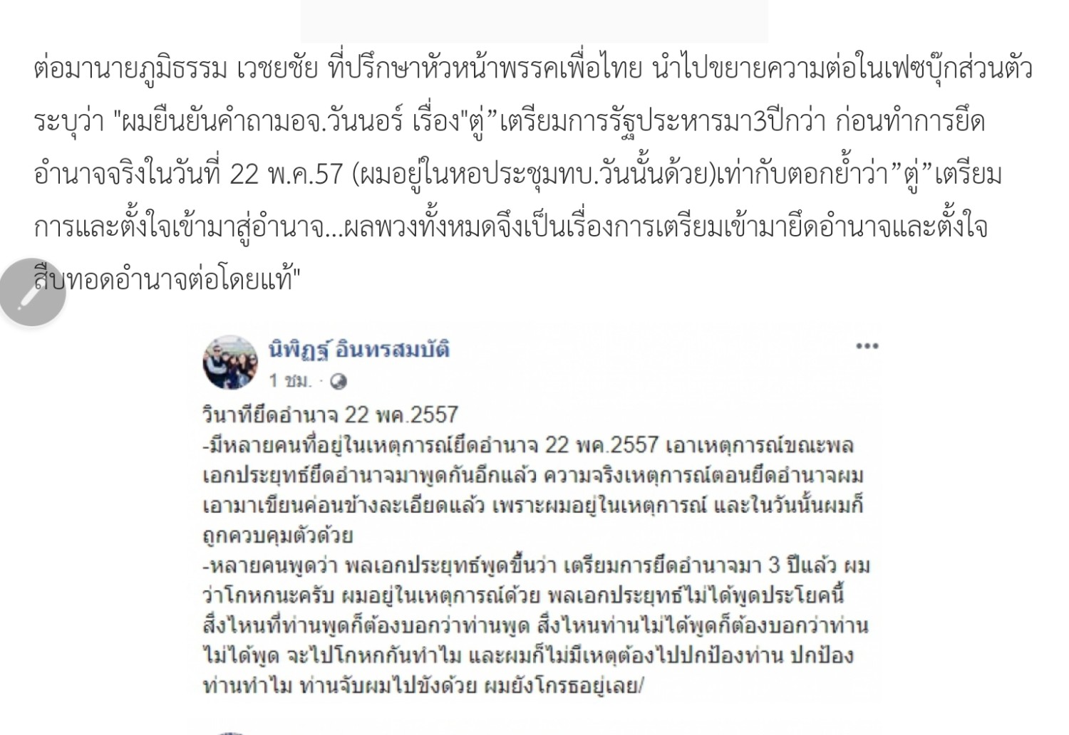 'วันนอร์-อ้วน'โกหก!'นิพิฏฐ์'หนึ่งในผู้อยู่ในห้องก่อนรัฐประหาร ยืนยัน'ประยุทธ์'ไม่ได้พูด'เตรียมการยึดอำนาจมา3ปี'