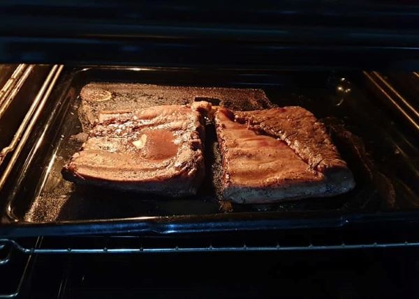 ระูหว่างอบ คอยตักน้ำซอส มาราดบนซี่โครงหมู เป็นระยะๆ