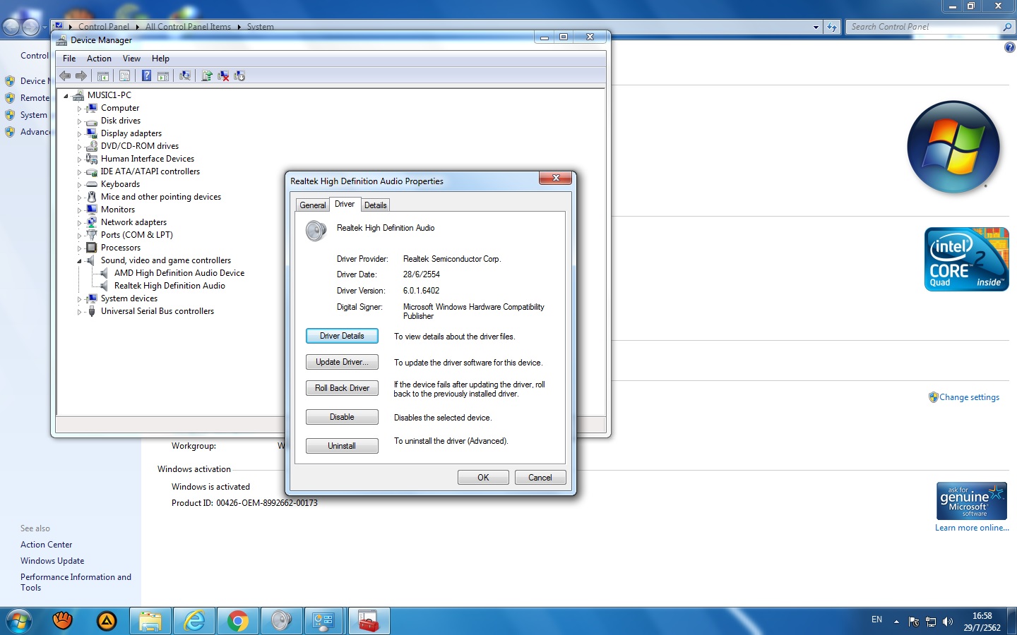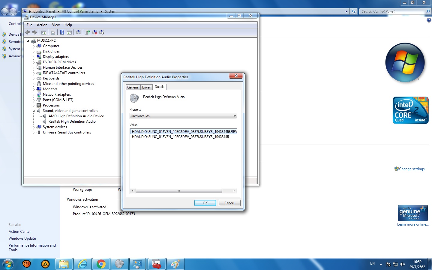 ช่วยด้วยครับผมลง Window7 Ultimate 64 bit ลงไดเวอร์ครบเครื่องเห็นปกติแต่เสียงไม่ออกครับ MB:asus p5g41t-m lx