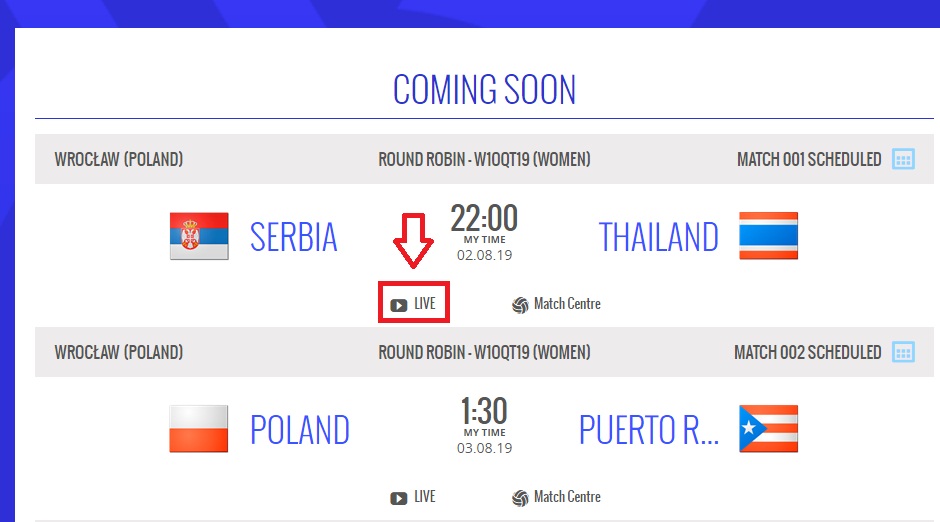 ไปหามาให้แล้ว จะมีไลฟ์ในเวลาที่แข่งขัน แนะนำว่าให้หาโปรแกรมเปลี่ยน VPN สำรองไว้ล่วงหน้า เผื่อ FIVB ปิดกั้นประเทศไทย