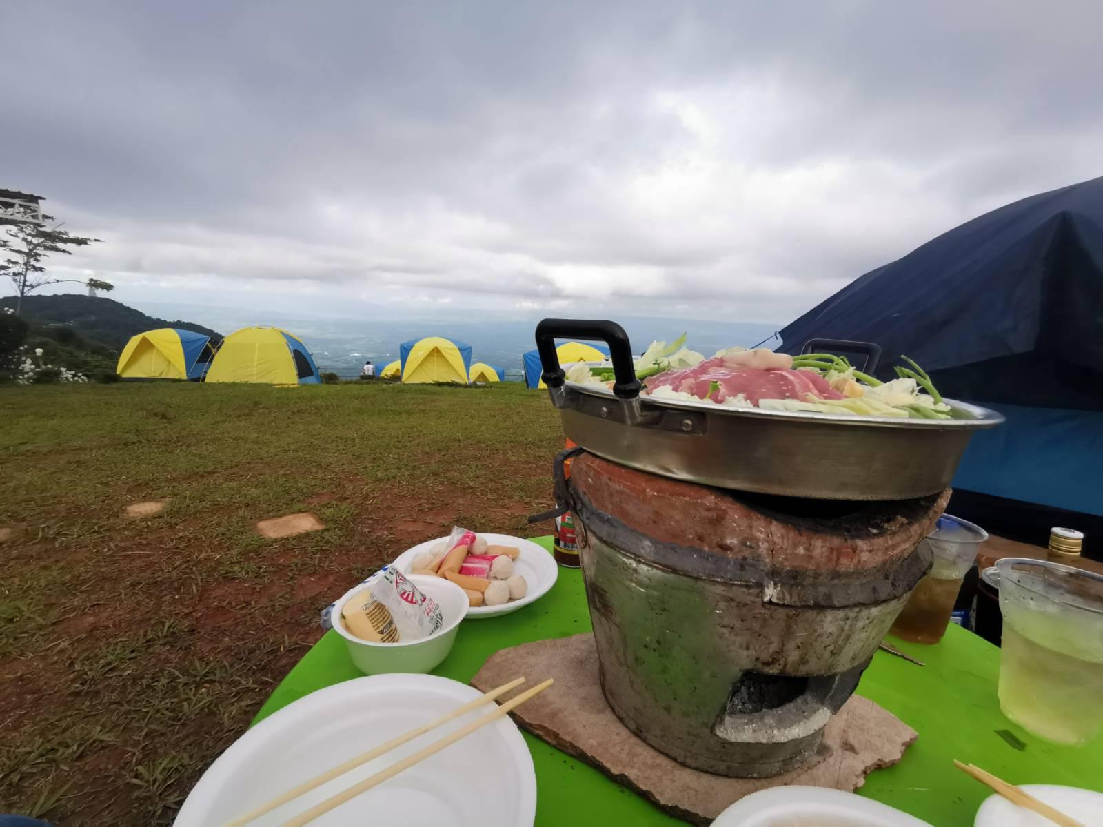 ตกเย็นเราสั่งหมูกระทะมากินกัน ชุดใหญ่ ชุดละ 500 บาท เบอร์หมูกระทะขอได้ที่พี่เจ้าของเลยคะ มีบริการส่งฟรีถึงหน้าเต้นท์เลย