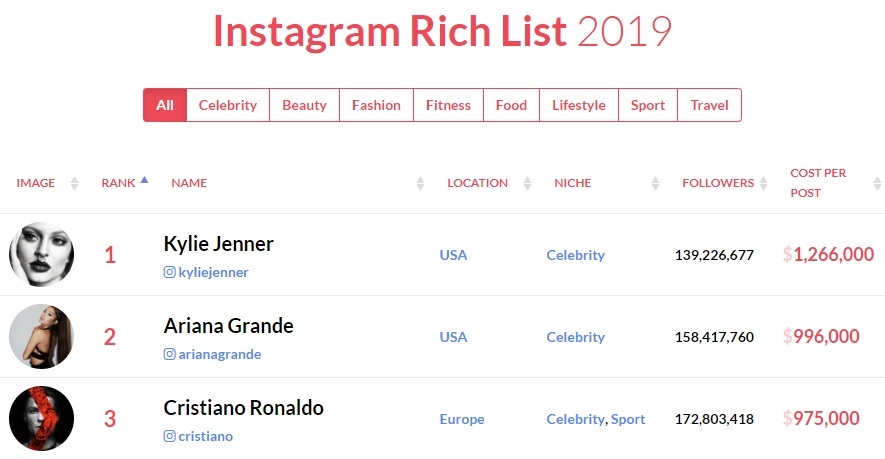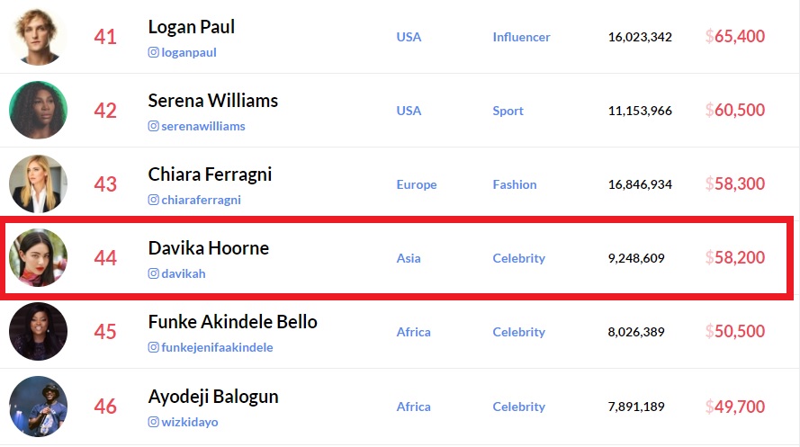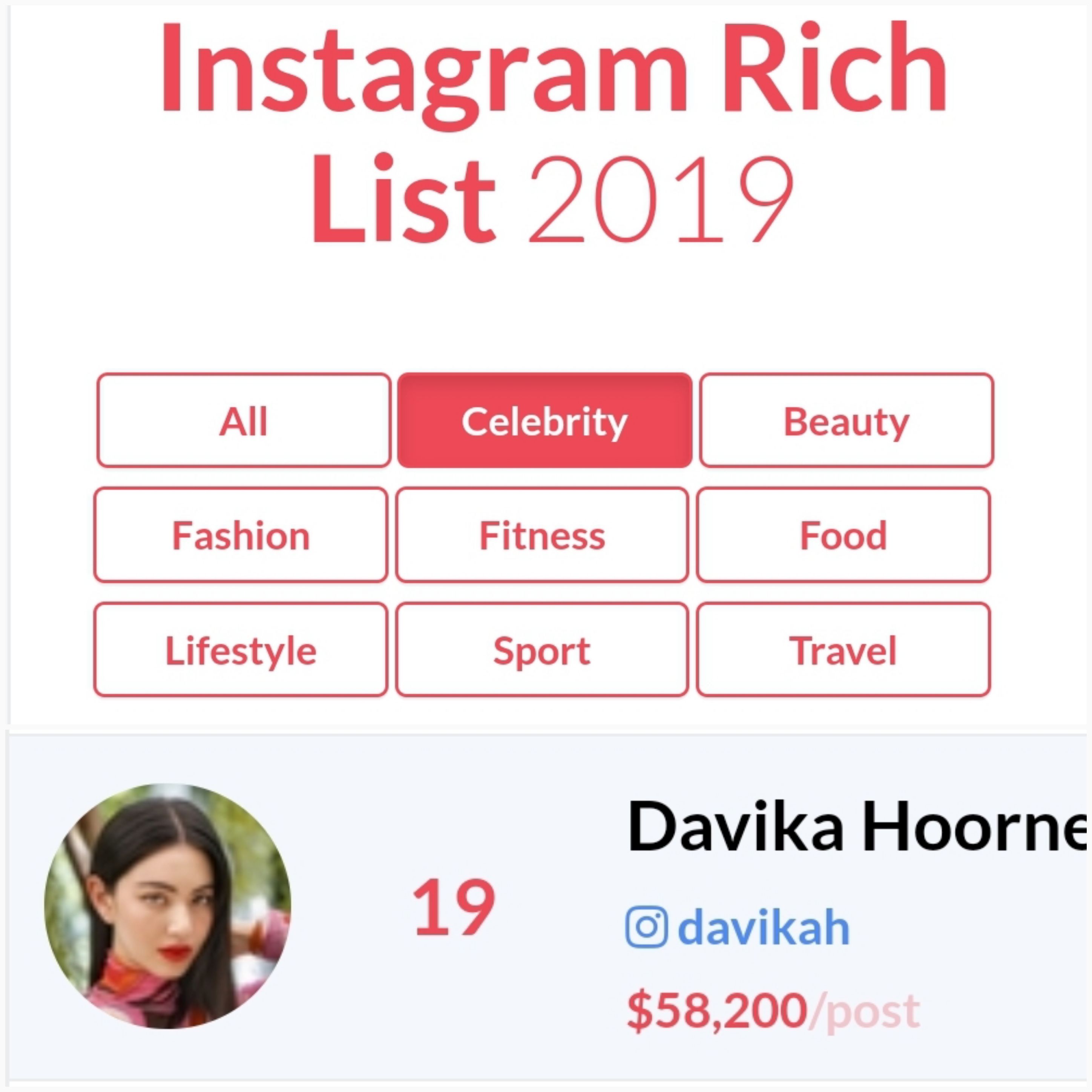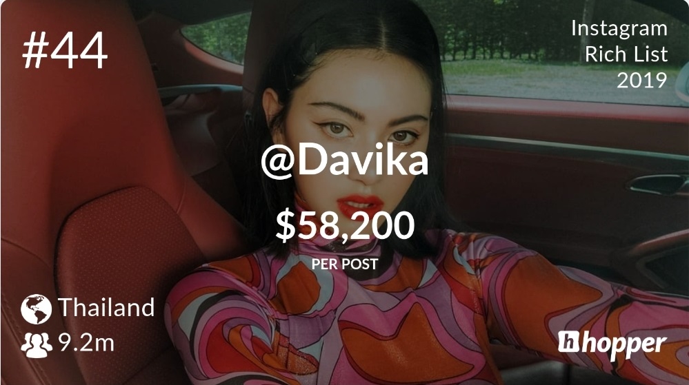 ใหม่ ดาวิกา อันดับ 44 Instagram Rich List 2019