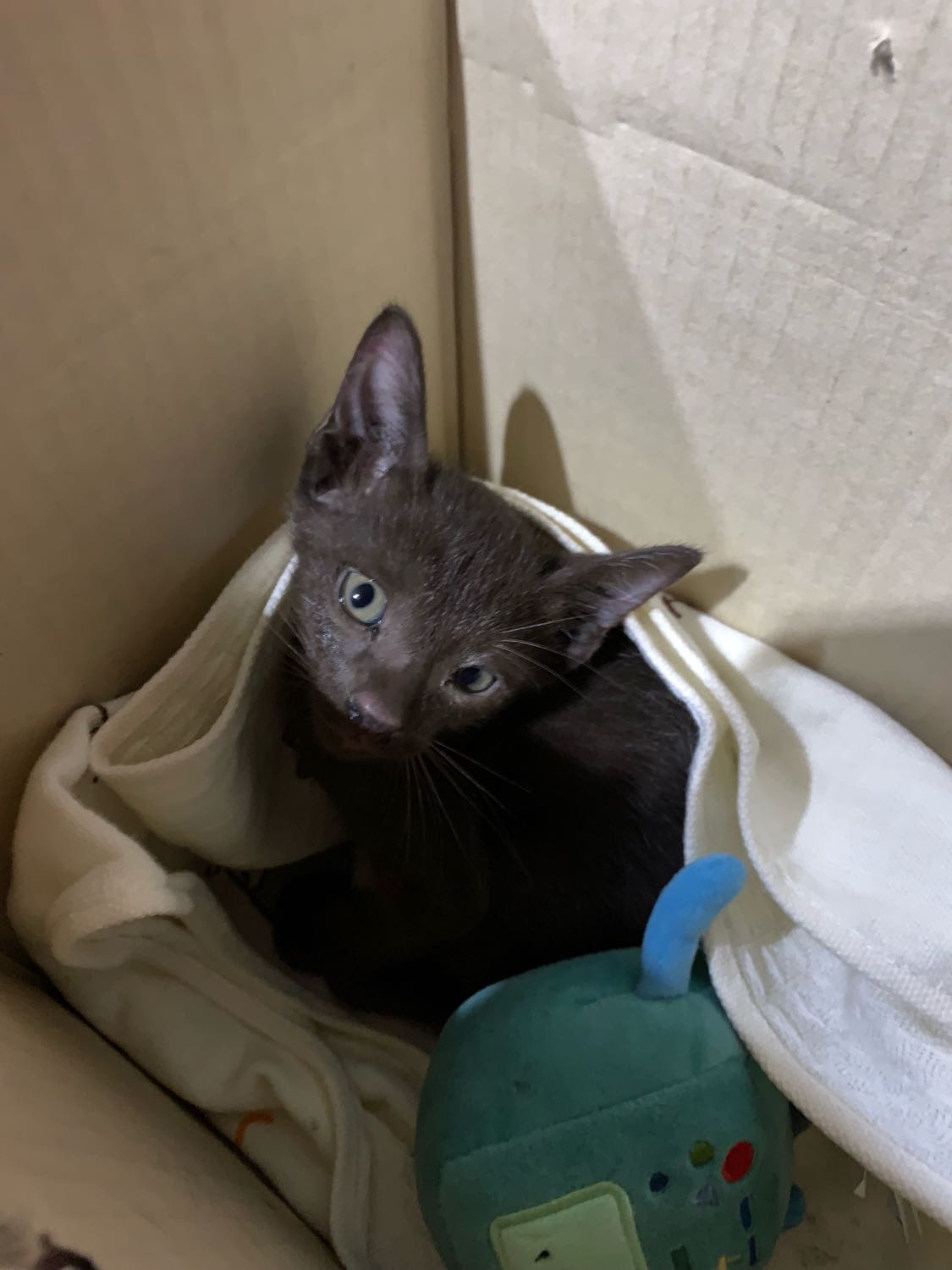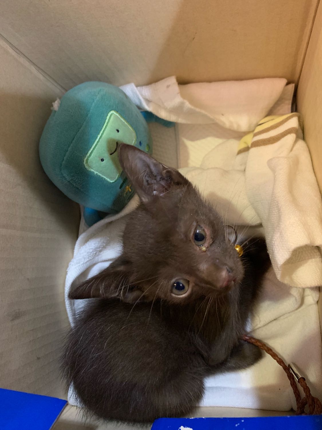 พอดีเจอลูกแมวตัวเล็กมาติดที่บังโคนล้อค่ะ