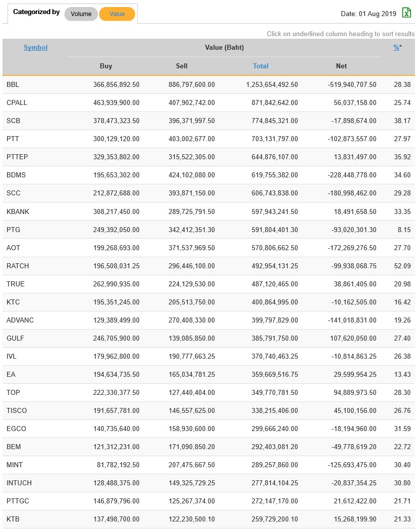ข้อมูลซื้อขายหุ้น 25 อันดับของนักลงทุนต่างชาติ NVDR ประจำวันที่ 1 สิงหาคม 2562