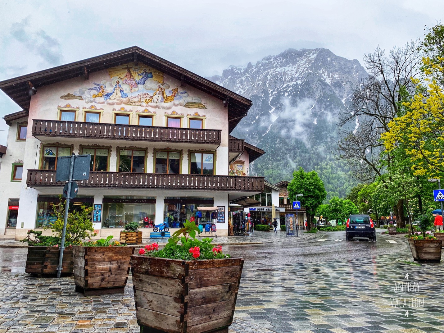 ขับรถประมาณ1 ชั่วโมงก็ถึงเมืองMittenwald อีกเมืองเล็กๆในBavaria สำหรับผู้ที่ชื่นชอบดนตรีคลาสสิค ที่นี่มีชื่อเสียงเรื่องการทำไวโอลินด้วยนะ บ้านเรือนในเมืองมีฉากหลังเป็นภูเขาKarwendel ที่มีหิมะปกคลุมยิ่งใหญ่ตระการตาโดยภูเขาแห่งนี้อยู่ใกล้กับเมืองมากๆ